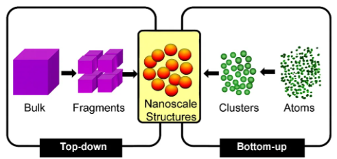(Source: https://www.researchgate.net/figure/Top-down-and-bottom-up-synthesis-of-nanofabrication_fig1_277574475)
