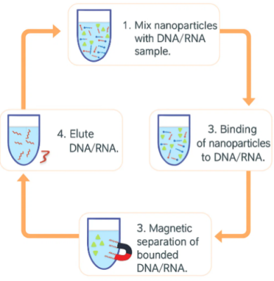 (Source – https://nvigen.com/wp-content/uploads/2018/11/magvigen-dna-rna-purification-workflow.gif)