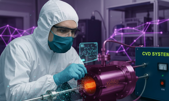 Fig: Laboratory technician operating CVD equipment for carbon nanotube production