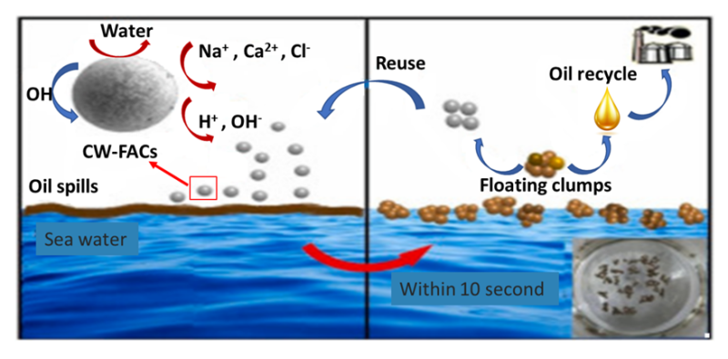 Figure 3: CW-FACs Nano sponge oil spill remediation and recycling process.