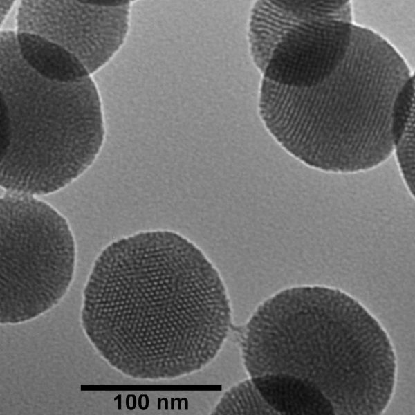 Mesoporous silica nanospheres with a bare surface (standard) are porous materials with a hexagonal (MCM-41 type) pore structure and are available with a diameter of 100 nm. MCM-41 type particles are the gold standard for silica particles used for drug delivery systems (DDS). Their high surface area, easy surface modification and biocompatibility make them ideal for targeted delivery of active pharmaceutical ingredients for cancer therapy and other applications. Open pores on both ends of the particles allow for better encapsulation and release of loaded drugs or other biomolecules.