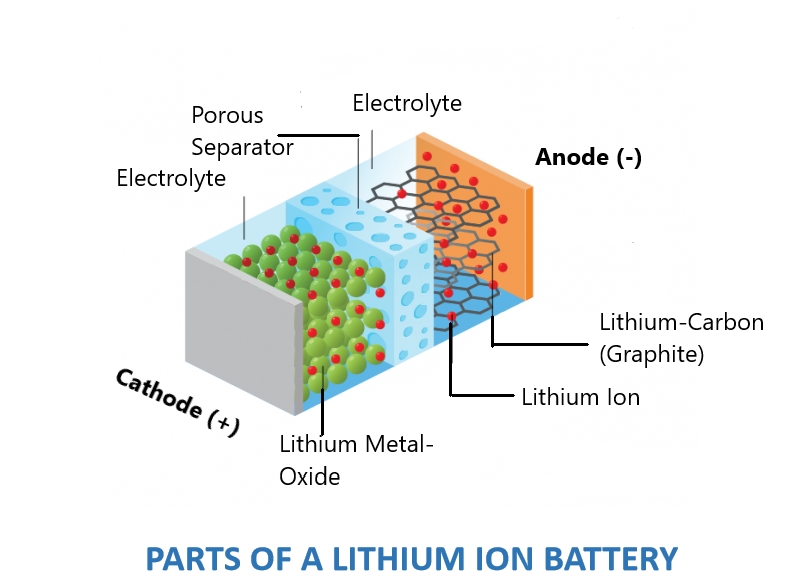 Anode: Usually made from carbon graphite, the anode stores lithium ions during charging. Graphite is chosen for its ability to intercalate lithium ions between its layers, enabling reversible charging and discharging. Charging and discharging is the core of performance of Lithium-ion battery.